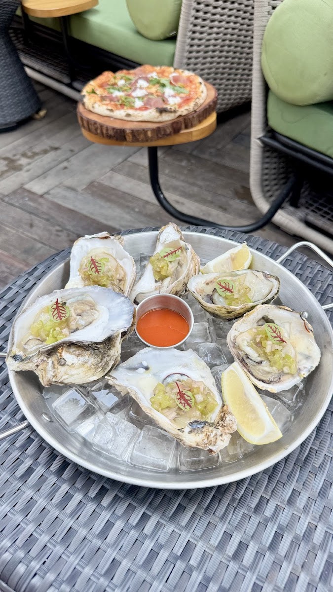 We arrived without a reservation and were pleased to be seated promptly, which was a great start. We weren’t initially aware of the minimum spend requirement, but the reception staff explained it clearly—any unspent amount is deducted from your bill, so there’s no risk of being overcharged. Our waiter, Adi, was excellent—polite, attentive, and quick to recommend delicious options for our meal. He was also very accommodating when we asked for additional drinks, bringing them without any fuss. The service overall was outstanding, complemented by good music and a fantastic atmosphere. The food was exceptional; we shared the grilled sampler, and both of us enjoyed it thoroughly. It’s a highly recommended choice if you’re looking for a variety of meats, fish, and tasty dips. And how can I forgot the cauliflower? I'd eat that everyday if I knew how to cook it like the chef did. The only downside was that we didn’t bring swimwear, as the pools look incredibly inviting. It’s a stunning location with breathtaking views—definitely a place to visit!